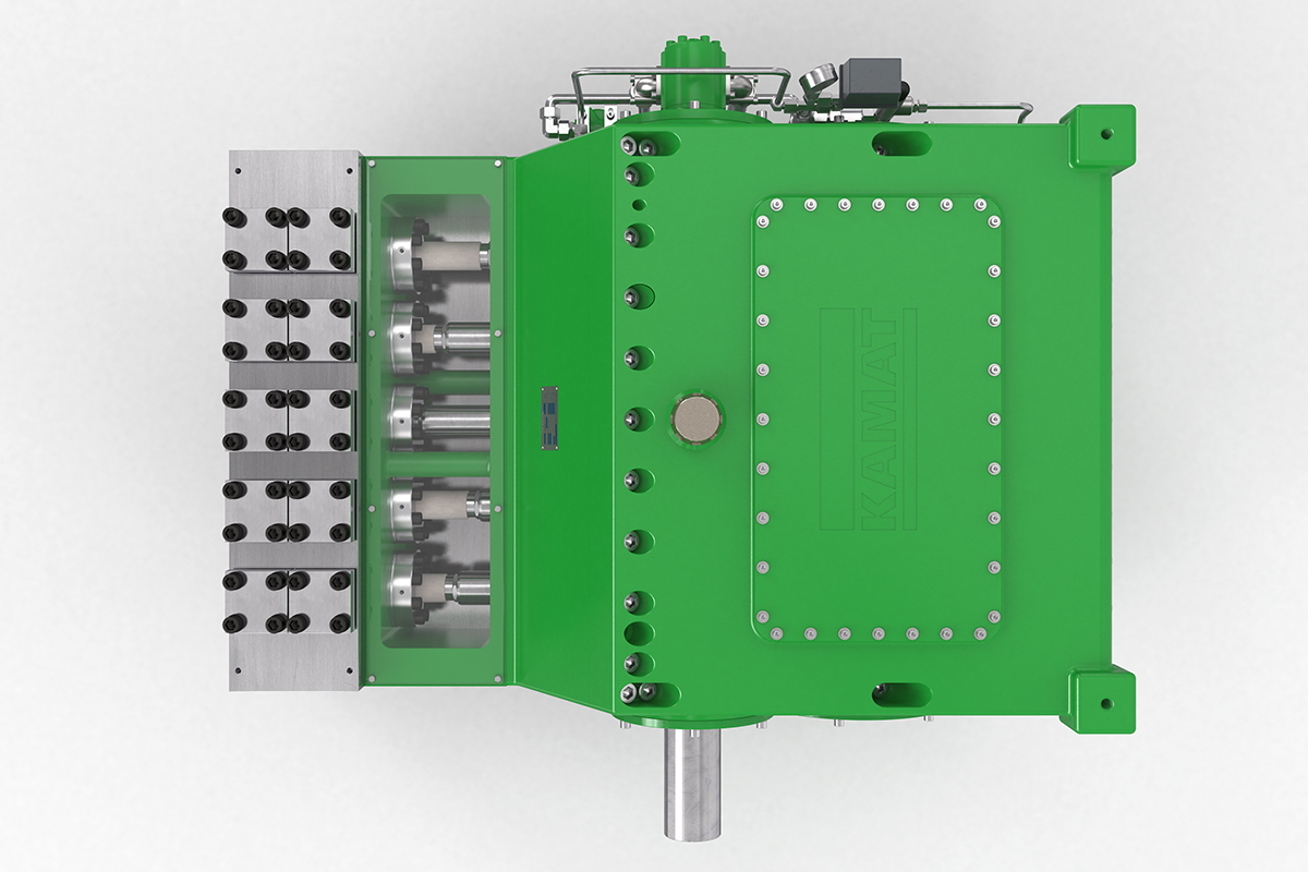K80000高壓泵的輸入功率為800 kW,是一款功能特別強(qiáng)大的泵。 作為五缸泵,它可以在許多應(yīng)用中工作而無需安裝入口增壓泵。 其特殊的五缸設(shè)計(jì)可實(shí)現(xiàn)大流量輸送,而不會(huì)在泵中產(chǎn)生氣穴。與較小型的K50000相似,它用于更大型噴射或液壓任務(wù)。 它特別適合高端采礦應(yīng)用,水力液壓系統(tǒng),鋼鐵廠以及石油和天然氣工業(yè)的大型系統(tǒng)中的重苦力。 帶有油壓潤滑和油冷卻器的變速箱可確保高壓泵安全,連續(xù)地運(yùn)行。